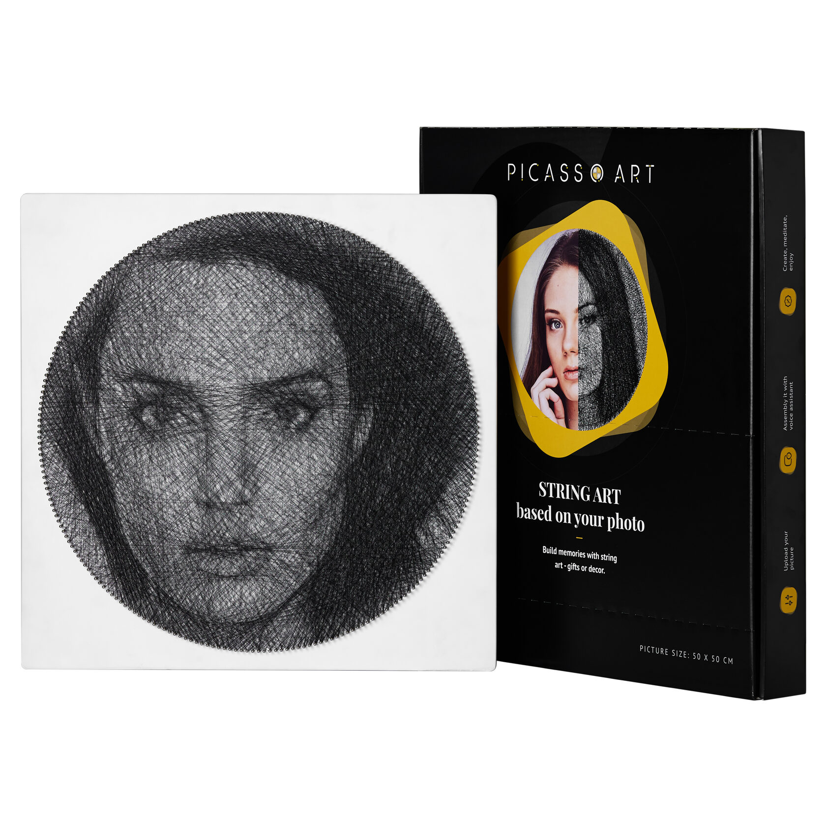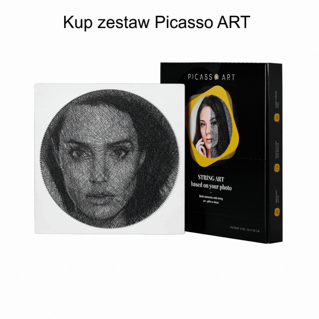 PicassoArt to pierwszy na świecie obraz z nitek z dowolnego zrobionego zdjęcia, który montujesz online za pomocą asystenta głosowego lub z wydrukowanej instrukcji PDF.